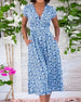 SPECIFIKATIONER Stil: Enkel Material: Bomullsblandningar Klänningstyp: A-linje Klänning längd: Midi Urringning: V-hals_V Mönstertyp: Blommig, Tryckt Typ av ärm: Vanlig ärm Ärmlängd: Kortärmad Detaljer: Ficka Passform typ: Vanlig Säsong: Vår, Sommar, Höst Tillfälle: Dagligen Paketet innehåller: 1 x Klänning STORLEKSTABELL(cm) Storle...