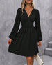 Enfärgad långärmad klänning med v-ringad hals