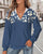 Sweatshirt Våffelmönster Blomtryck V-ringning