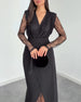 Två-Dels Set Med V-Hals Spets Top, Asymmetrisk Midikjol Och Elegant Stil