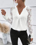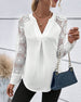 SPECIFIKATIONER Topptyp: Toppar Stil: Chic Material: Bomullsblandningar,Spets Tillfälle: Dagligen,Fest Urringning: Draperad Krage Mönstertyp: Enfärgade Typ av ärm: Vanlig ärm Ärmlängd: Långärmad Passform typ: Vanlig Säsong: Höst,Vinter Detaljer: Lappverk Paketet innehåller: 1 x Topp STORLEKSTABELL(cm) Storlek Byst Längd S 97 65 M 101 66....