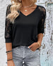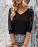 SPECIFIKATIONER Topptyp: Toppar Stil: Enkel Material: Bomullsblandningar Tillfälle: Dagligen Urringning: V-hals_V Mönstertyp: Enfärgade Typ av ärm: Vanlig ärm Ärmlängd: 3/4 ärm Passform typ: Vanlig Säsong: Höst,Vinter Detaljer: Spets Paketet innehåller: 1 x Topp STORLEKSTABELL(cm) Storlek Byst Längd S 92 65 M 96 66.5 L 100 68 XL 106 ...