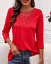 SPECIFIKATIONER Topptyp: Toppar Stil: Enkel Material: Bomullsblandningar Tillfälle: Dagligen Urringning: Rund nacke Mönstertyp: Enfärgade Typ av ärm: Vanlig ärm Ärmlängd: 3/4 ärm Passform typ: Vanlig Säsong: Höst,Vinter Detaljer: Spets Paketet innehåller: 1 x Topp STORLEKSTABELL(cm) Storlek Byst Längd S 92 65 M 96 66.5 L 100 68 XL 10...