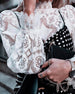 Blus Sexig Genomskinlig Långärmad Ståkrage Spets