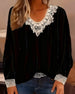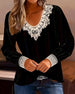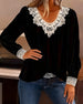 SPECIFIKATIONER Topptyp: Blusar Stil: Enkel Material: Bomullsblandningar,Spets Tillfälle: Dagligen Urringning: V-hals_V Mönstertyp: Färgblock Typ av ärm: Vanlig ärm Ärmlängd: Långärmad Passform typ: Vanlig Säsong: Höst,Vinter Detaljer: Lappverk,Spets Paketet innehåller: 1 x Blus STORLEKSTABELL(cm) Storlek Byst Längd S 92 65 M 96 66.5 L...