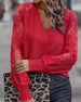 Blus V-ringning Spetsig Avslappnad Långärmad