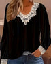 Blus V-ringning Spets Lapptäcksarbete Lössittande