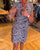 Klänning med V-ringning och geometrisk mönster