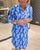 Tryckt kortärmad lång klänning med rund hals