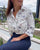 Tryckt topp med stativkrage och nio fjärdedels ärm