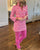 Elegant långklänning med tryck med en axel och utsvängningsärm