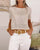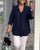 Casual enfärgad blus med V-ringning och trekvartsärm