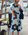 Casual tryckt set med kort ärm och fickor