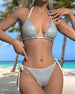 SPECIFIKATIONER Stil: Sexig Material: 82% Chinlon,18% Spandex Tillfälle: Semester Urringning: Grimma Mönstertyp: Paljett,Enfärgade Ärmlängd: Ärmlös Linnetyp: Bikini BH typ: Triangel Nedre typ: Knytsida Passform typ: Skinny Detaljer: Rygglös,Snöra upp Paketet innehåller: 1 x Bikini STORLEKSTABELL(cm) Storlek Byst Midjeomkrets S 80 70 M...