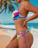 SPECIFIKATIONER Stil: Semester Material: 15% Spandex,85% Polyester Tillfälle: Semester Mönstertyp: Regnbågsrandig Ärmlängd: Ärmlös Linnetyp: Bikini BH typ: Triangel Nedre typ: Naturlig Passform typ: Skinny Detaljer: Rygglös Paketet innehåller: 1 x Bikini STORLEKSTABELL(cm) Storlek Byst Midjeomkrets Höft Under byst S 88 73 96 73 M 92 77 1...