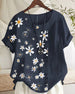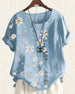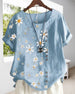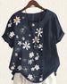 SPECIFIKATIONER Topptyp: Blusar Stil: Enkel, Vintage Material: Bomull Tillfälle: Dagligen, Arbete Urringning: Rund nacke Mönstertyp: Tryckt Typ av ärm: Vanlig ärm Ärmlängd: Kortärmad Passform typ: Lös Säsong: Vår, Sommar, Höst Detaljer: Lappverk Paketet innehåller: 1 x Blus STORLEKSTABELL(cm) Storlek Byst Längd Armlängd Axlar S...