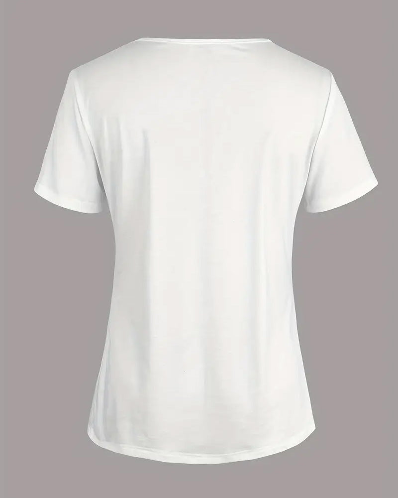 Komfortabel enfärgad lapelblus med kort ärm och ficka