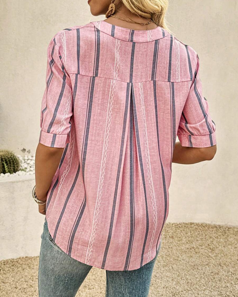 Komfortabel enfärgad lapelblus med kort ärm och ficka
