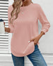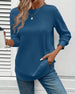Enfärgad topp med 3/4 ärm med rund hals