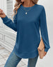 Lös enfärgad långärmad blus