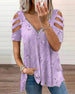 Kortärmad avslappnad topp med V-ringad tryck