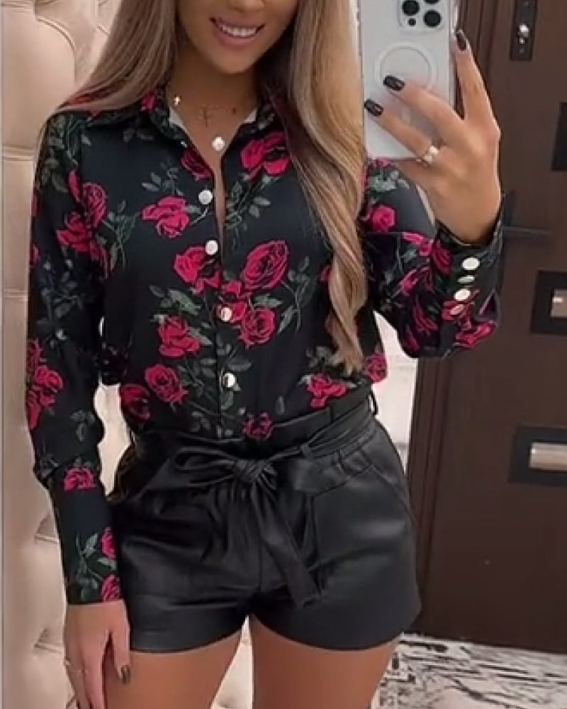 Icon1 Skjorta Krage Blommigt Tryck Långärmad