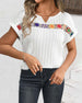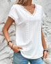 SPECIFIKATIONER Topptyp: T-shirt Stil: Chic, Elegant Material: 100% Polyester Tillfälle: Dagligen, Semester Urringning: V-hals Mönstertyp: Enfärgade Typ av ärm: Vanlig ärm Ärmlängd: Kortärmad Passform typ: Lös Säsong: Vår, Sommar Detaljer: Spets Paketet innehåller: 1 x T-shirt STORLEKSTABELL(cm) Storlek Byst Längd S 95 65 M 1...