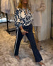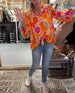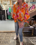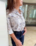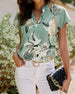 Elegant tröja med trekvartsärm i lapel med blommigt tryck