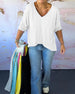 SPECIFIKATIONER Topptyp: Blusar Stil: Enkel, Kontor Material: Bomullsblandningar Tillfälle: Dagligen, Arbete Urringning: V-hals_V Mönstertyp: Enfärgade Typ av ärm: Volangärm Ärmlängd: Kortärmad Passform typ: Vanlig Säsong: Vår, Sommar, Höst Detaljer: Lappverk Paketet innehåller: 1 x Blus STORLEKSTABELL(cm) Storlek Byst Längd S 95 65 M 10...