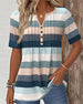 SPECIFIKATIONER Topptyp: Blusar Stil: Enkel Material: Bomullsblandningar Tillfälle: Dagligen Urringning: V-hals_V Mönstertyp: Randig,Färgblock Typ av ärm: Vanlig ärm Ärmlängd: Kortärmad Passform typ: Vanlig Säsong: Vår,Sommar Detaljer: Knappar,Blandade Paketet innehåller: 1 x Blus STORLEKSTABELL(cm) Storlek Byst Längd S 97 65 M 101 66.5 ...