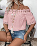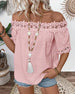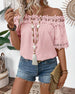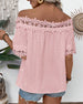 SPECIFIKATIONER Topptyp: Blusar Stil: Enkel Material: Bomullsblandningar Tillfälle: Dagligen Urringning: Off Shoulder Mönstertyp: Tryckt Typ av ärm: Vanlig ärm Ärmlängd: Kortärmad Passform typ: Vanlig Säsong: Vår,Sommar Detaljer: Lappverk,Spets Paketet innehåller: 1 x Blus STORLEKSTABELL(cm) Storlek Byst Längd S 97 65 M 101 66.5 L 105 ...