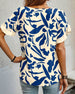 Blus Rund Hals Utskrift Volang