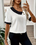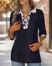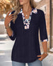 Blus Med Revers Trekvartsärm Kontrastfärg