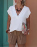 V-ringad kortärmad enfärgad blus