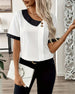 SPECIFIKATIONER Topptyp: Blusar Stil: Enkel Material: Bomullsblandningar Tillfälle: Dagligen Urringning: V-hals_V Mönstertyp: Färgblock Typ av ärm: Vanlig ärm Ärmlängd: Kortärmad Passform typ: Vanlig Säsong: Vår,Sommar Paketet innehåller: 1 x Blus STORLEKSTABELL(cm) Storlek Byst Längd S 97 65 M 101 66.5 L 105 68 XL 111 69.5 2XL 117...