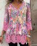 Skjorta avslappnad tryckt v-ringad kort ärm