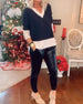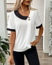 Avslappnad topp med v-ringning och färgblock