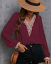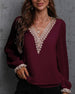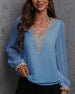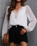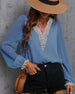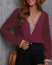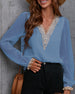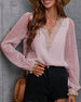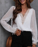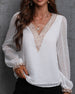 SPECIFIKATIONER Topptyp: Blusar Stil: Elegant, Kontor Material: Spets, Chiffong Tillfälle: Dagligen, Arbete Urringning: V-hals_V Mönstertyp: Enfärgade Typ av ärm: Puffärm Ärmlängd: Långärmad Passform typ: Vanlig Säsong: Vår, Sommar, Höst Detaljer: Lappverk, Spets Paketet innehåller: 1 x Blus STORLEKSTABELL(cm) Storlek Byst Längd...