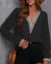 Topp Leopard V-ringning Lapparbete Lång Ärm