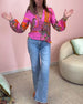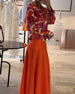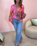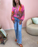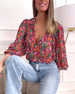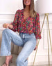 Färgglad tryckt V-ringad långärmad blus