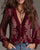 Färgblockad V-ringning Mönstrad Långärmad Topp
