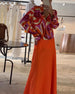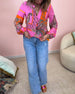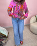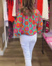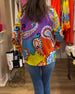 Färgglad blus med tryck och knappar