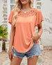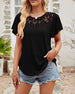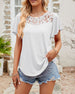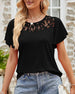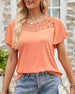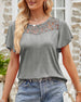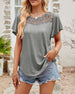 Enfärgad kortärmad topp i enfärgad spetssömnad i mesh