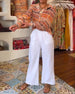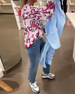 Blommig blus med oregelbunden fåll med slag