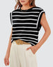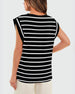Avslappnad ärmlös topp med randigt tryck med rund hals