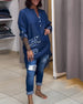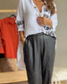 Lapel volang enfärgad skjorta