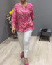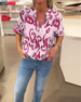 Modetryckt blus med V-ringning och lång ärm