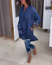 SPECIFIKATIONER Topptyp: Toppar Stil: Enkel Material: 70% Bomull, 30% Polyester Tillfälle: Dagligen Urringning: V-hals_V Mönstertyp: Brev Typ av ärm: Tappad axel Ärmlängd: Långärmad Passform typ: Vanlig Säsong: Vår, Sommar, Höst Detaljer: Ficka, Knappar Paketet innehåller: 1 x Topp STORLEKSTABELL(cm) Storlek Byst Före Efter Armlängd Axl...