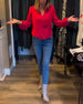 V-hals pläterad topp med knappar