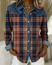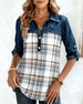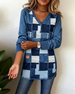 Blus med avslappnad rutig randigt tryck och lång ärm